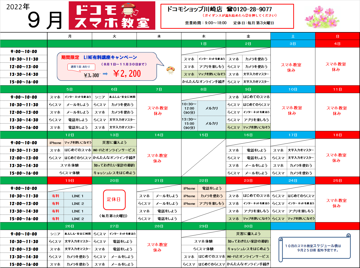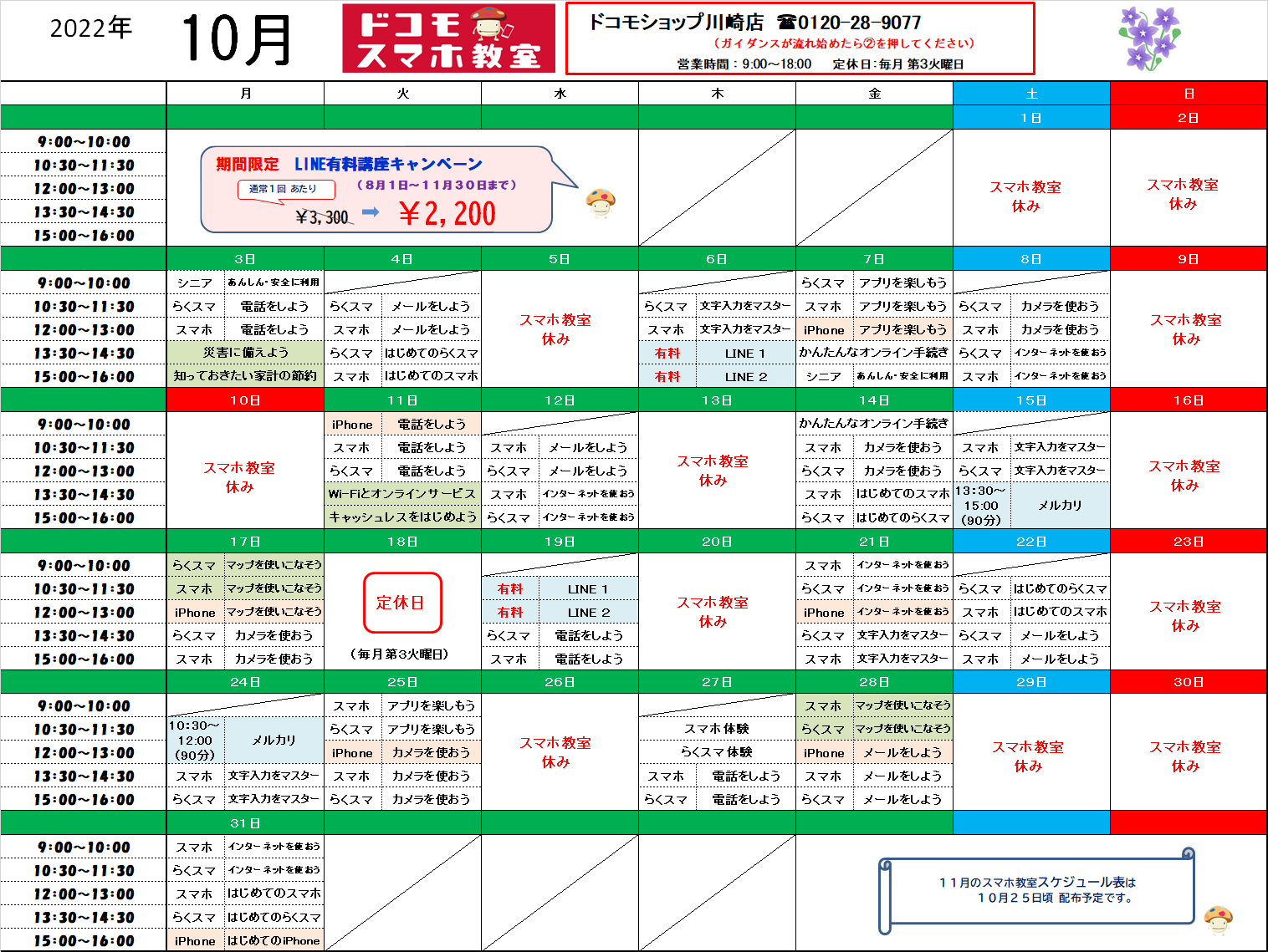 様々な講座を準備して皆様のご来店をお待ちしております。