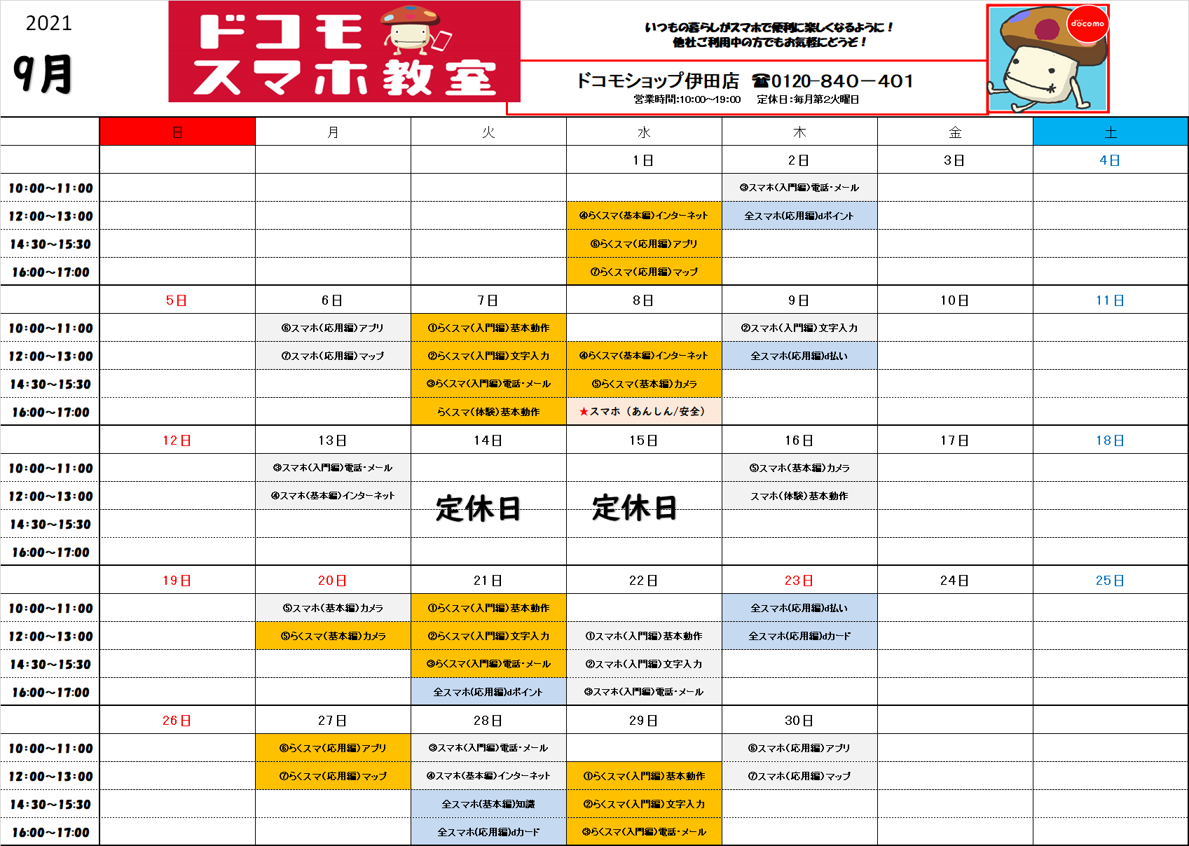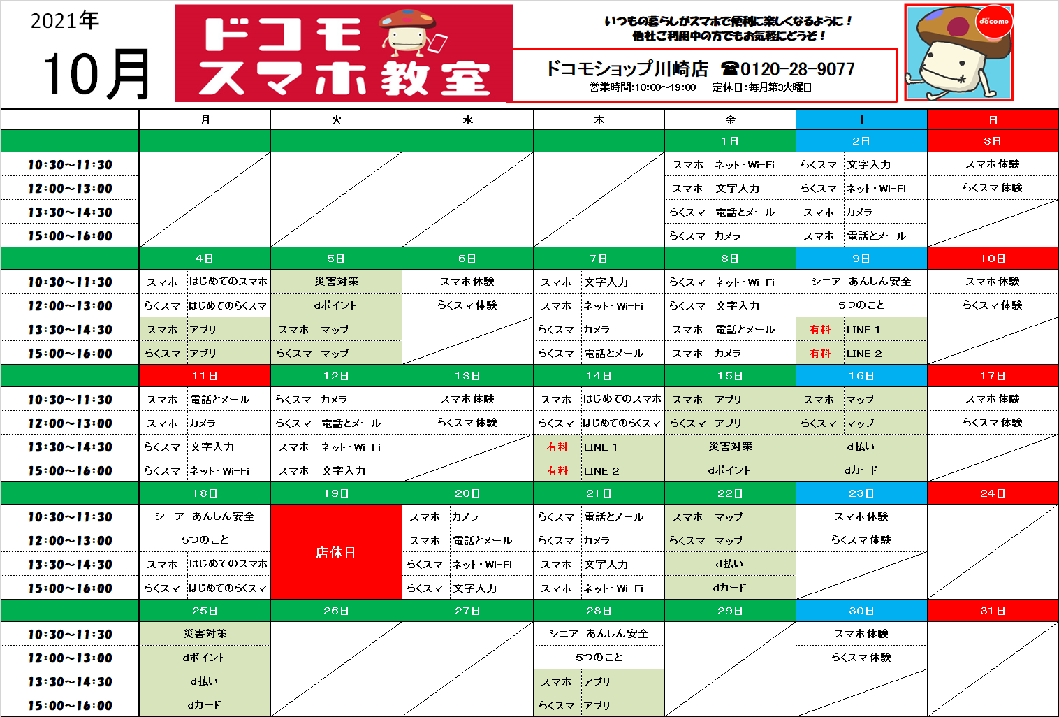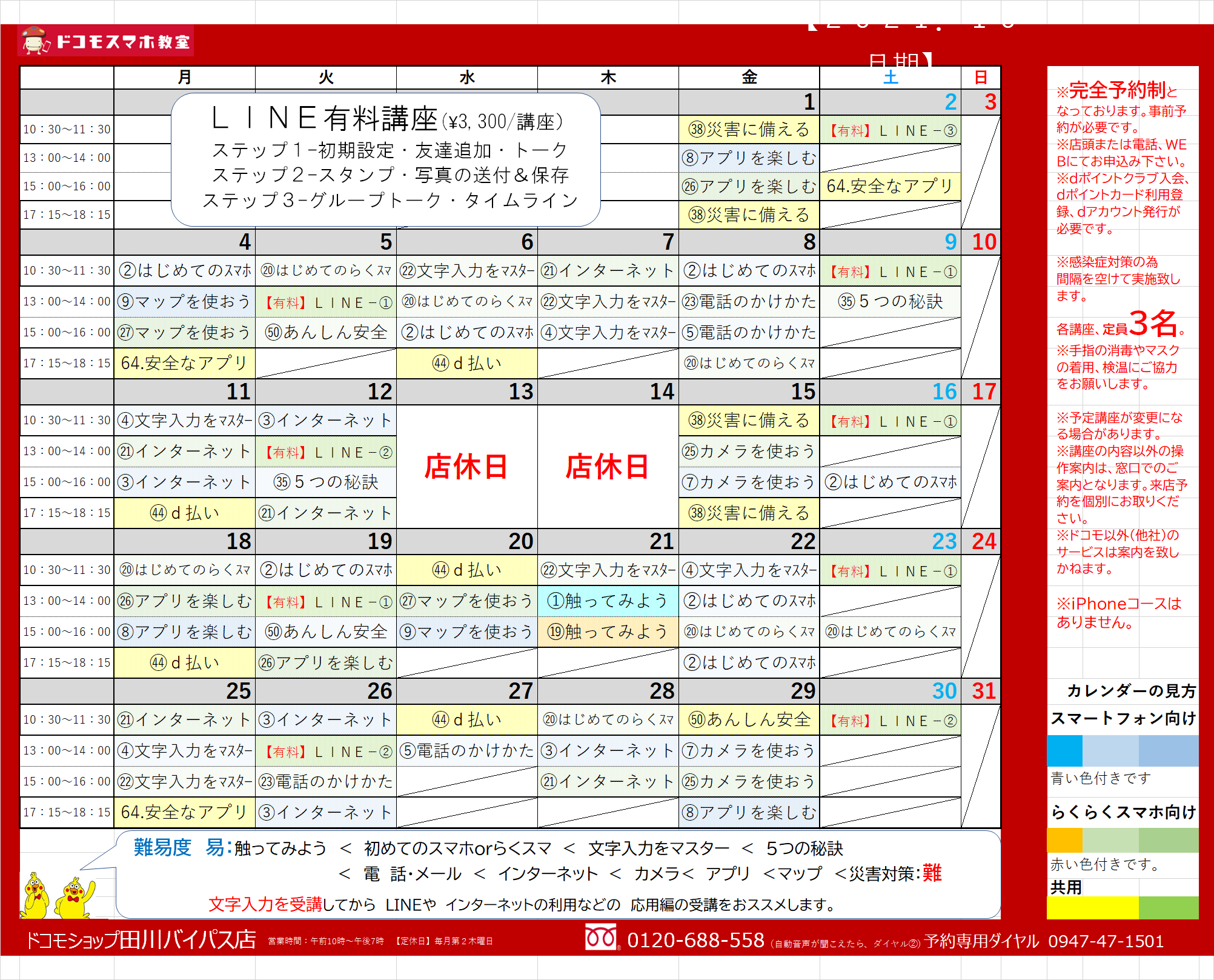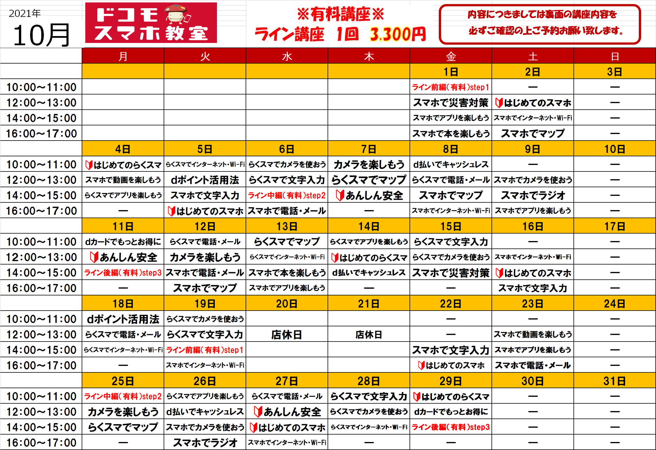 10月のスマホ教室スケジュール(ドコモショップ田川バイパス店)