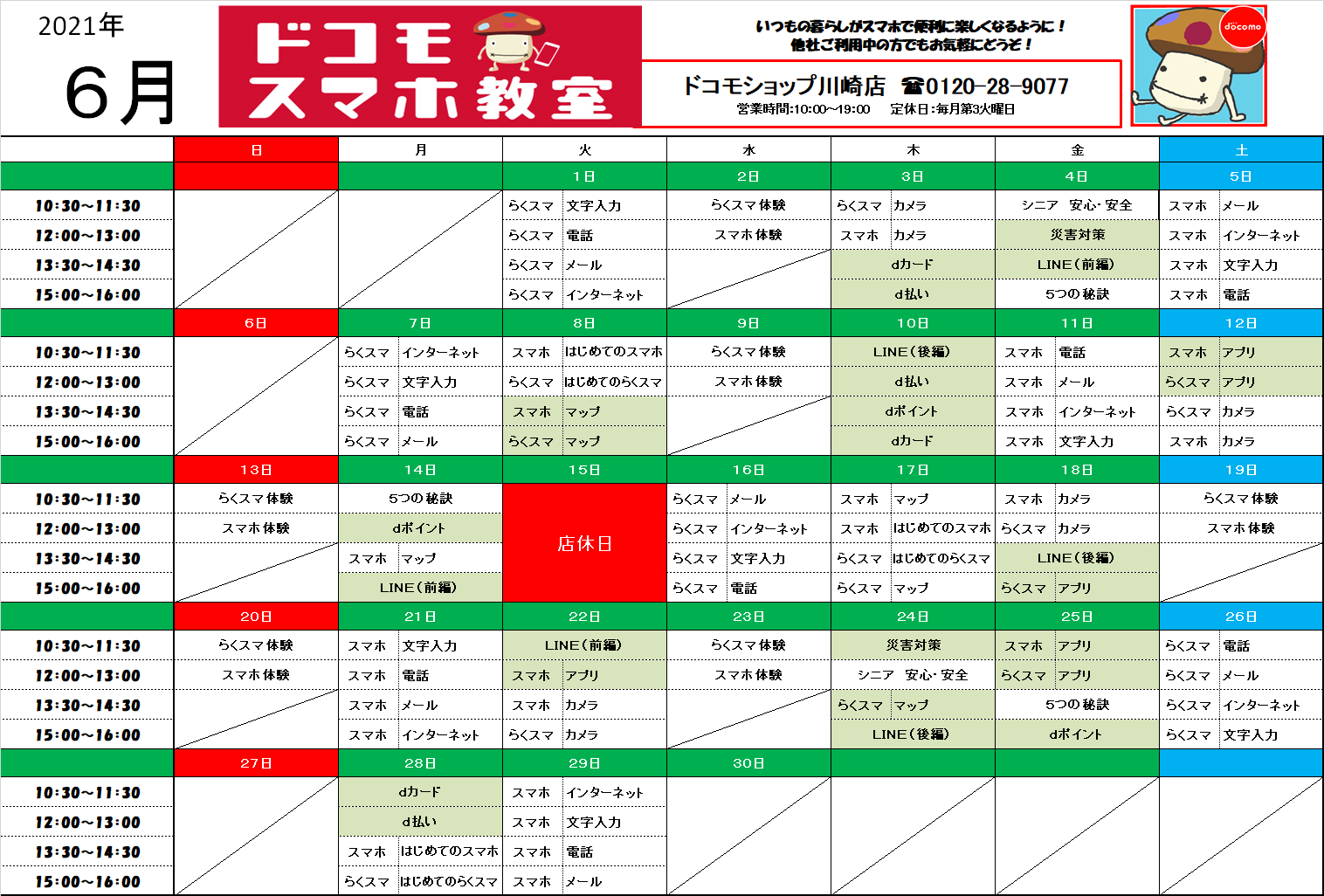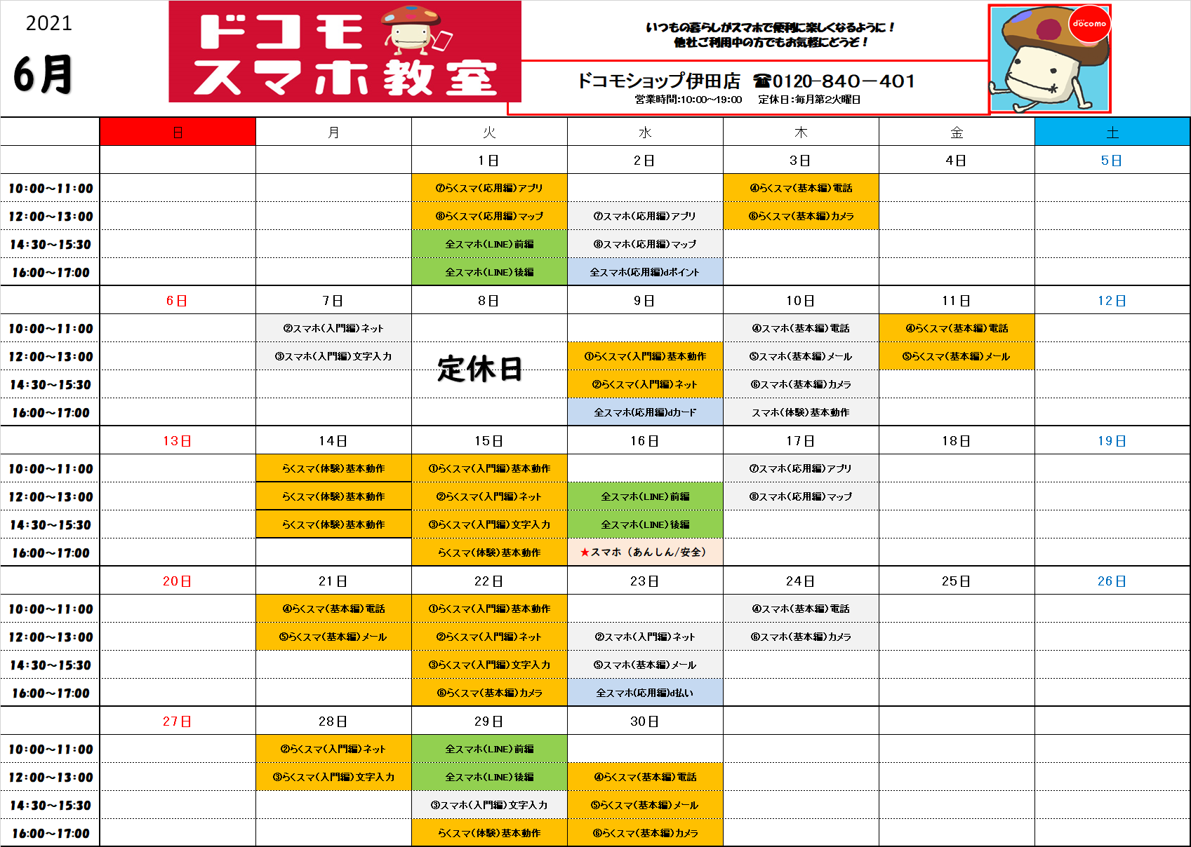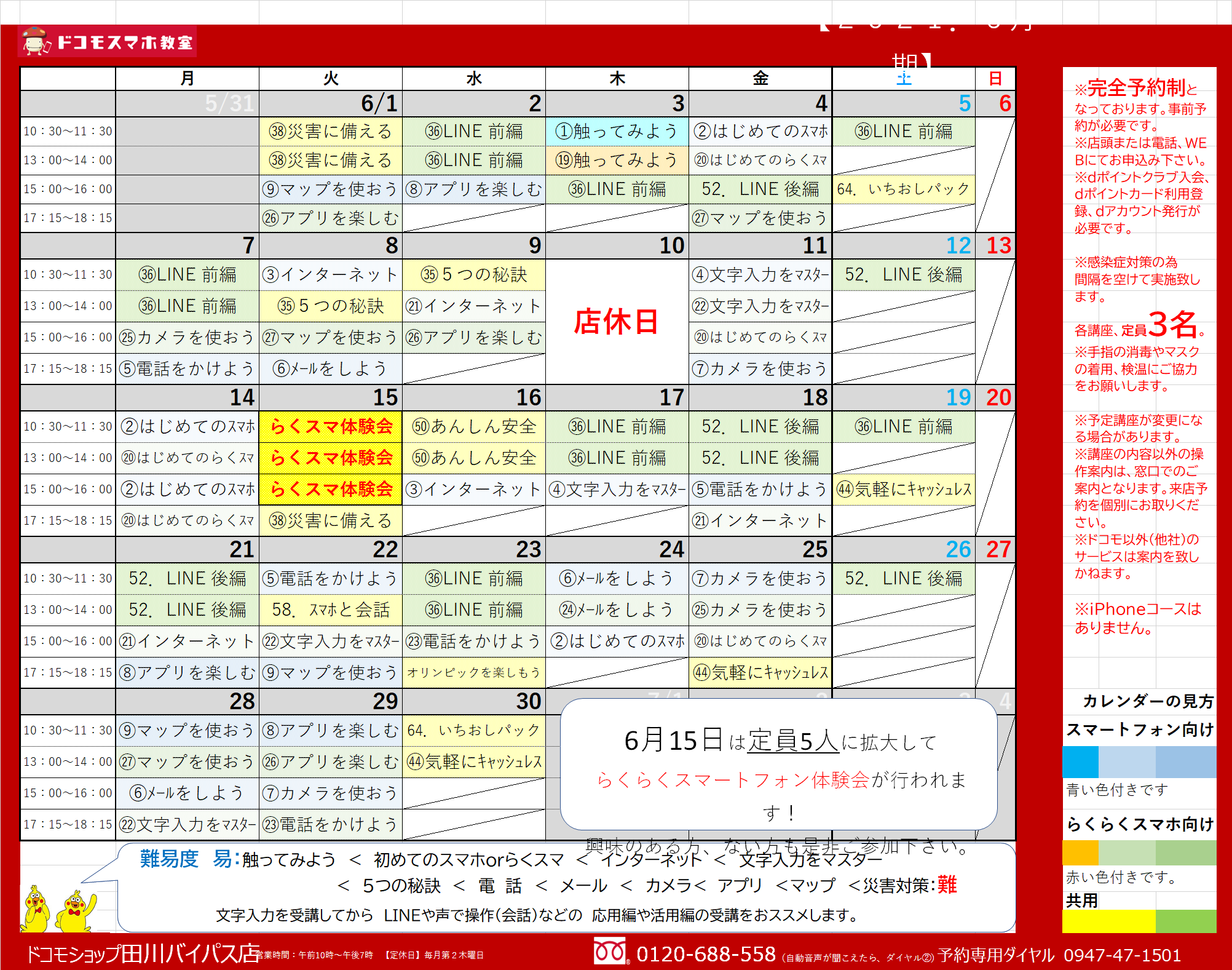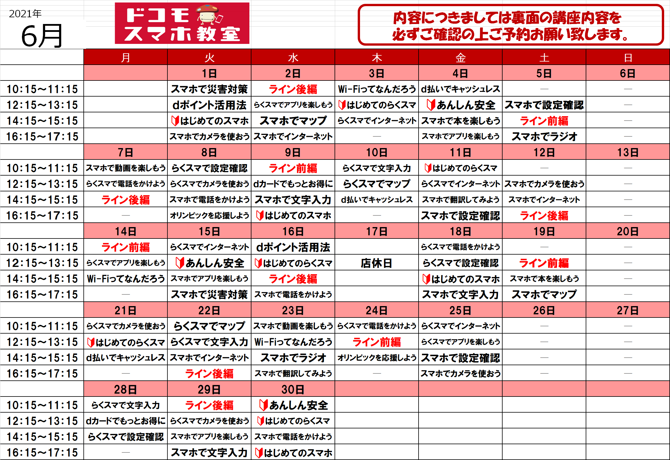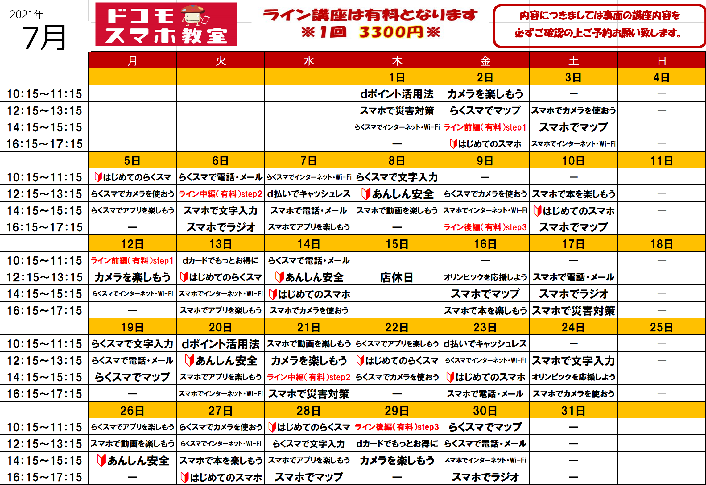 7月のスマホ教室スケジュール(ドコモショップ豊前店)