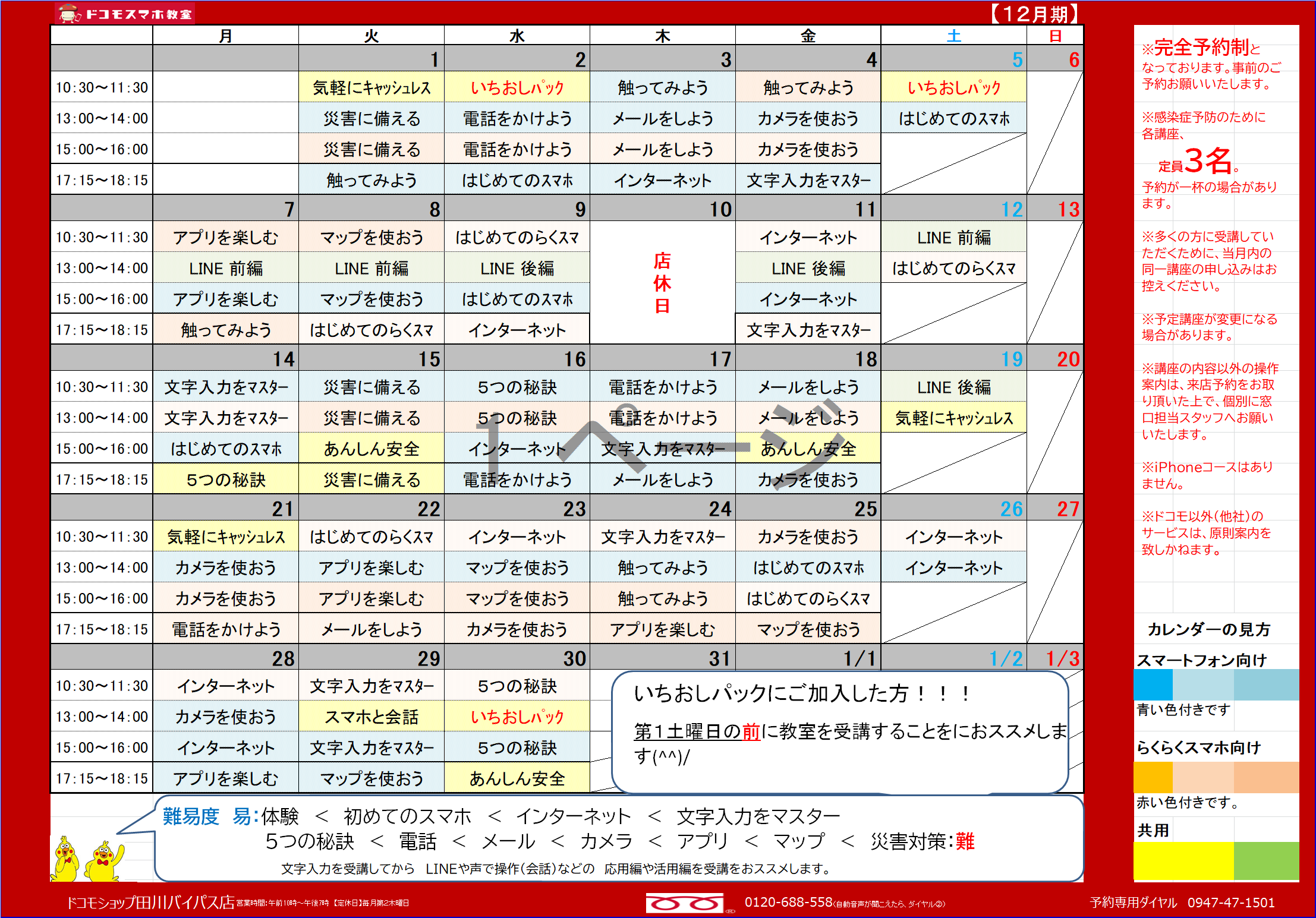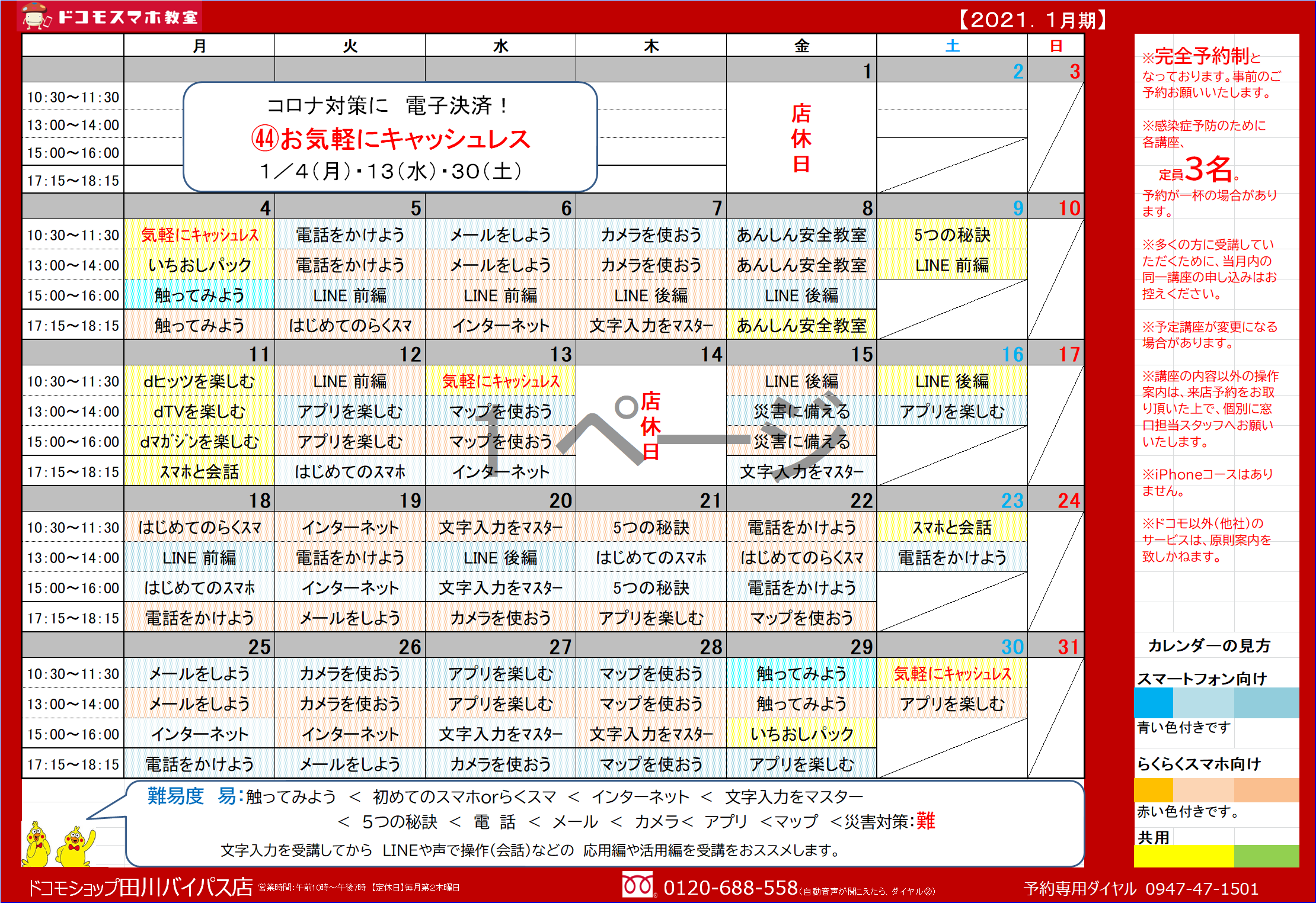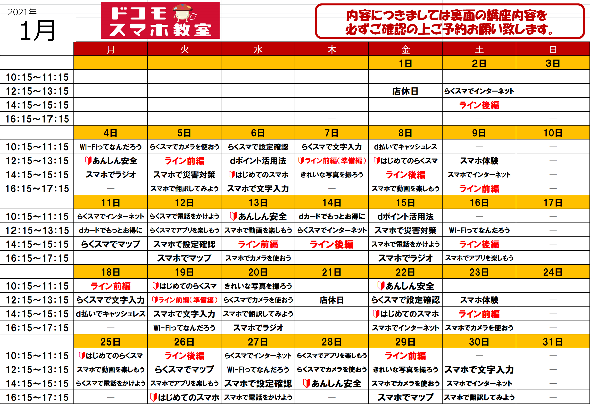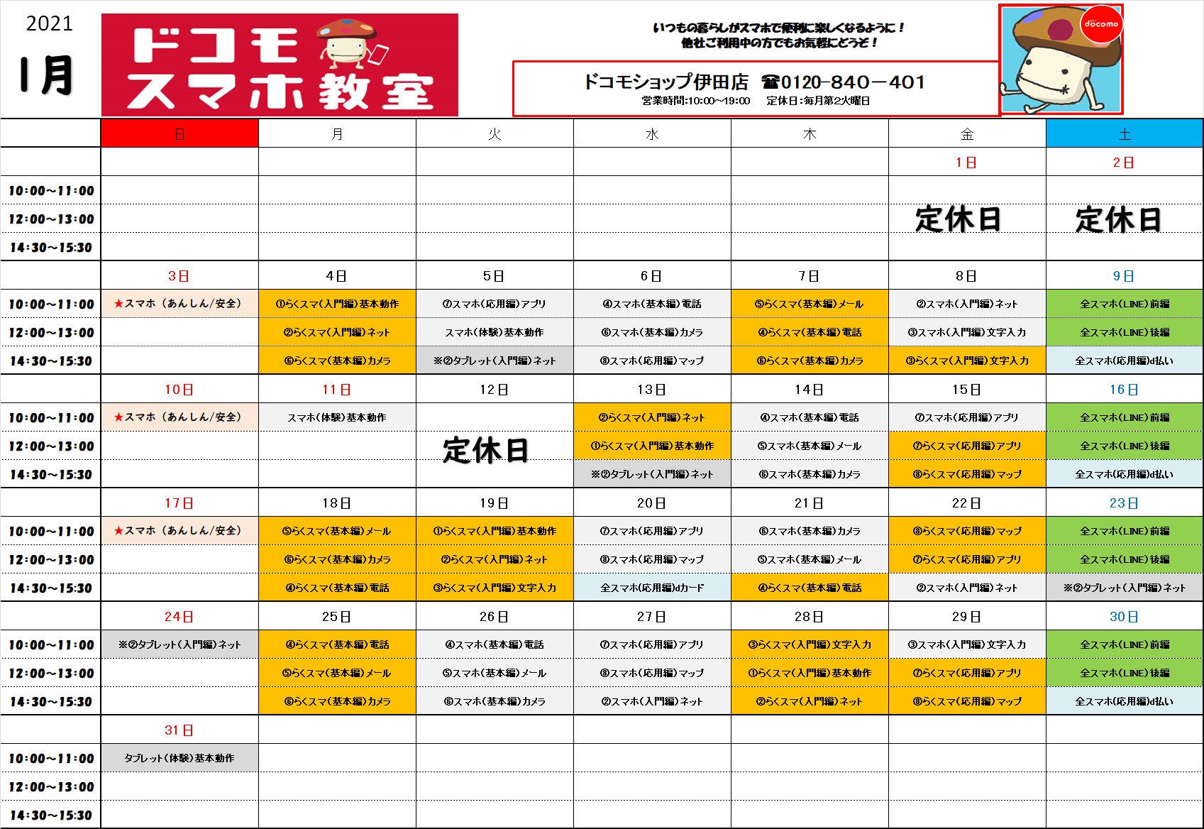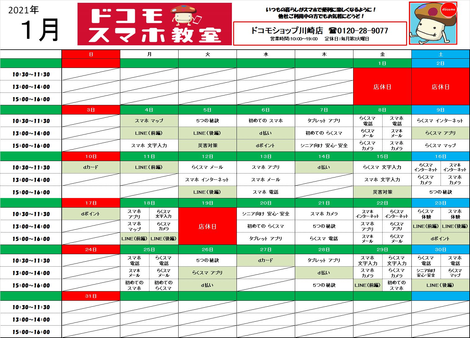 1月のスマホ教室スケジュール(ドコモショップ川崎店)