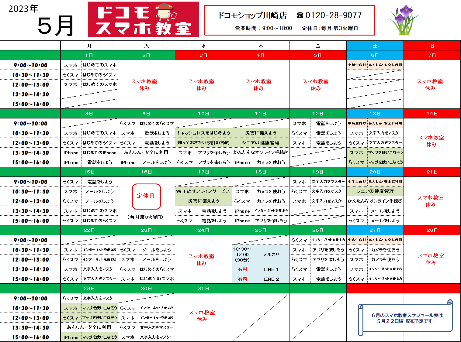 様々な講座を準備して皆様のご来店をお待ちしております。