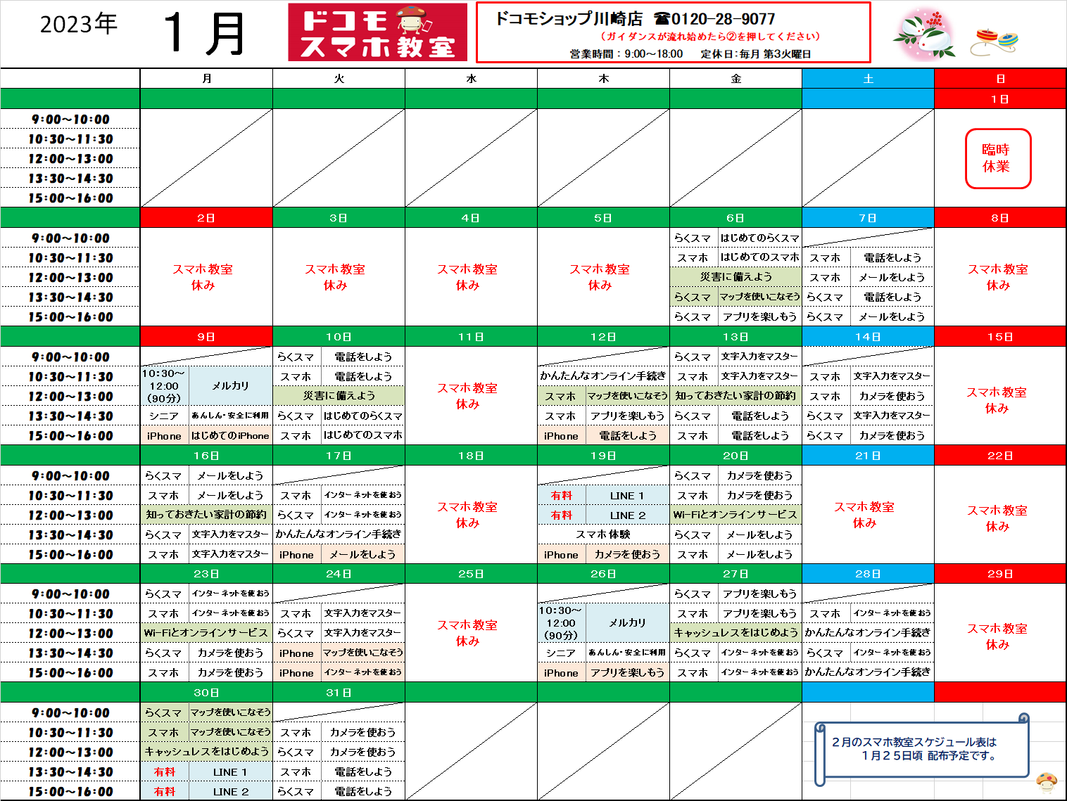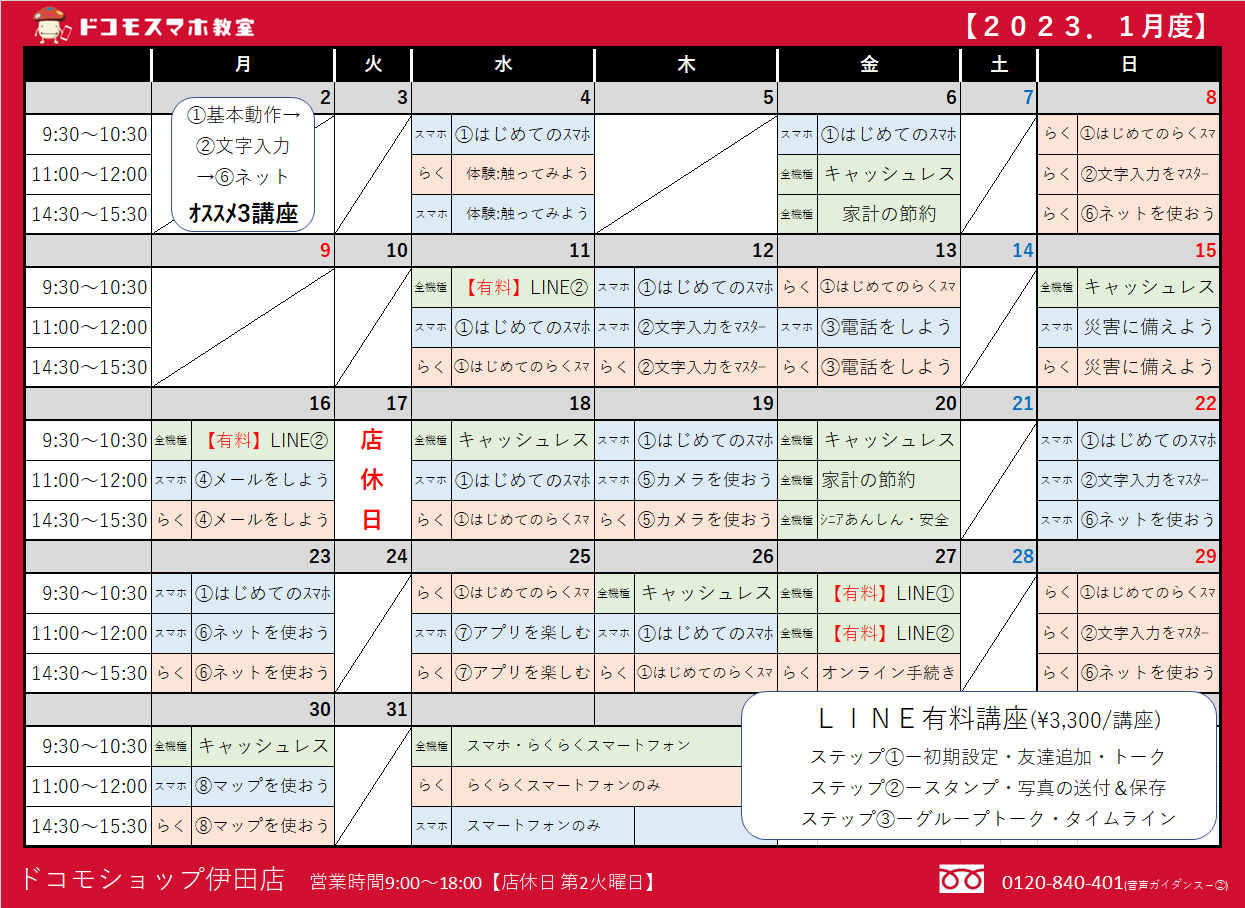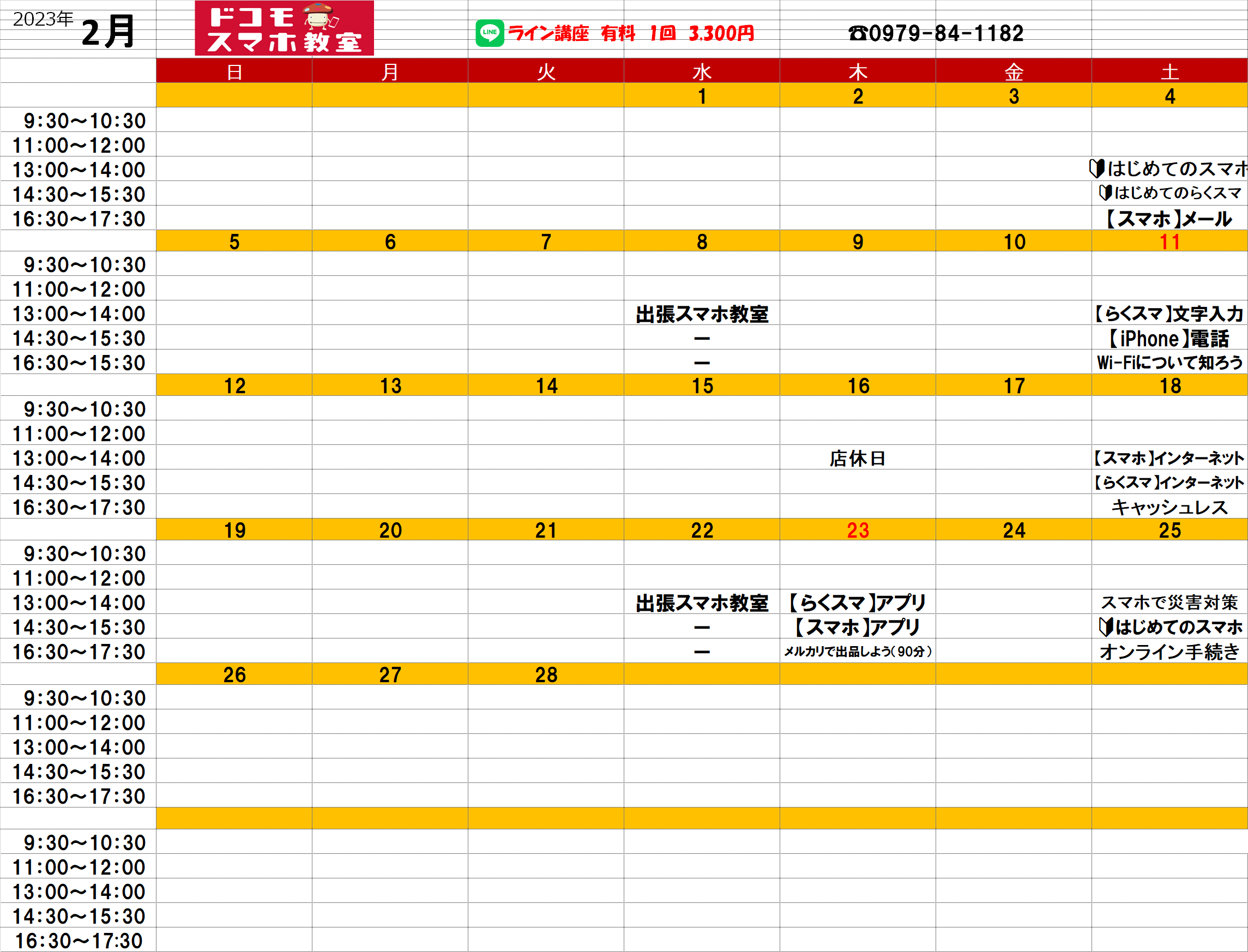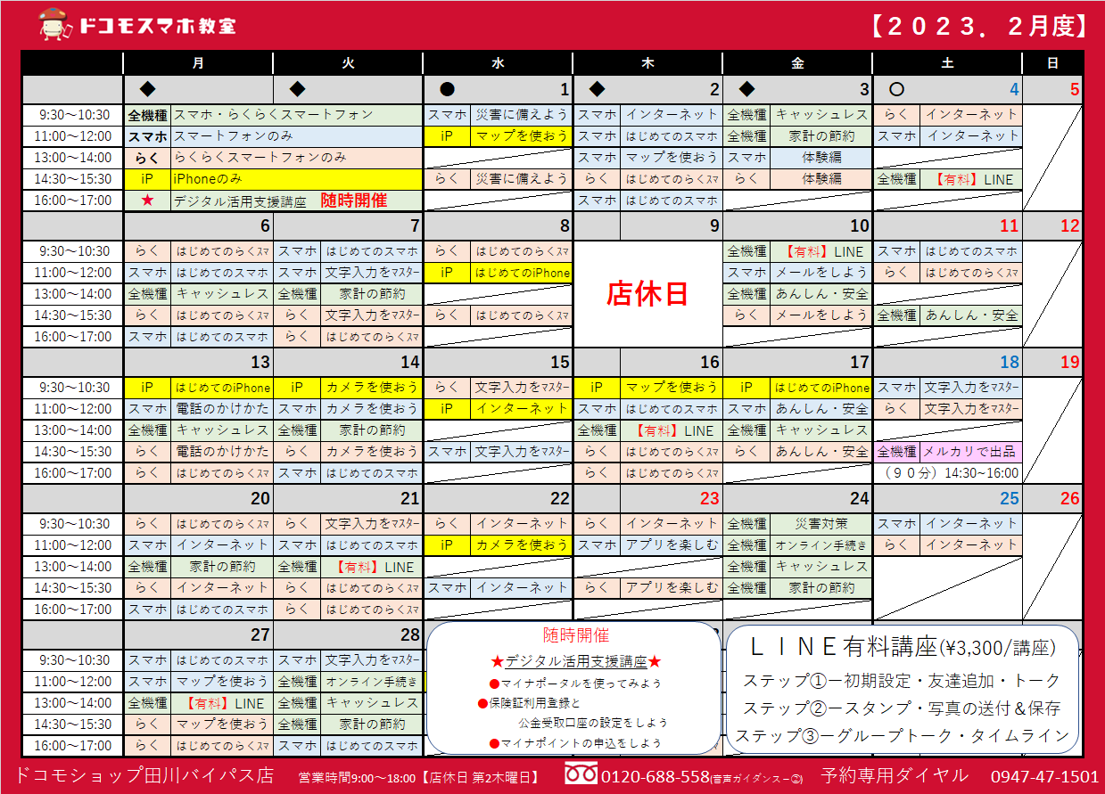 2月のスマホ教室スケジュール(ドコモショップ田川バイパス店)